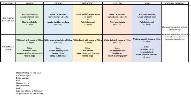 Breakfast and Afterschool Menu