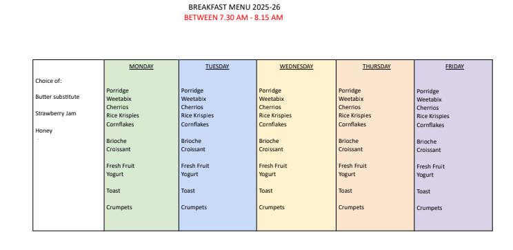Allergens: If your child has specific dietary needs or medical allergies, please ensure you have completed the Dietary Requirement Request Form available from the school office.