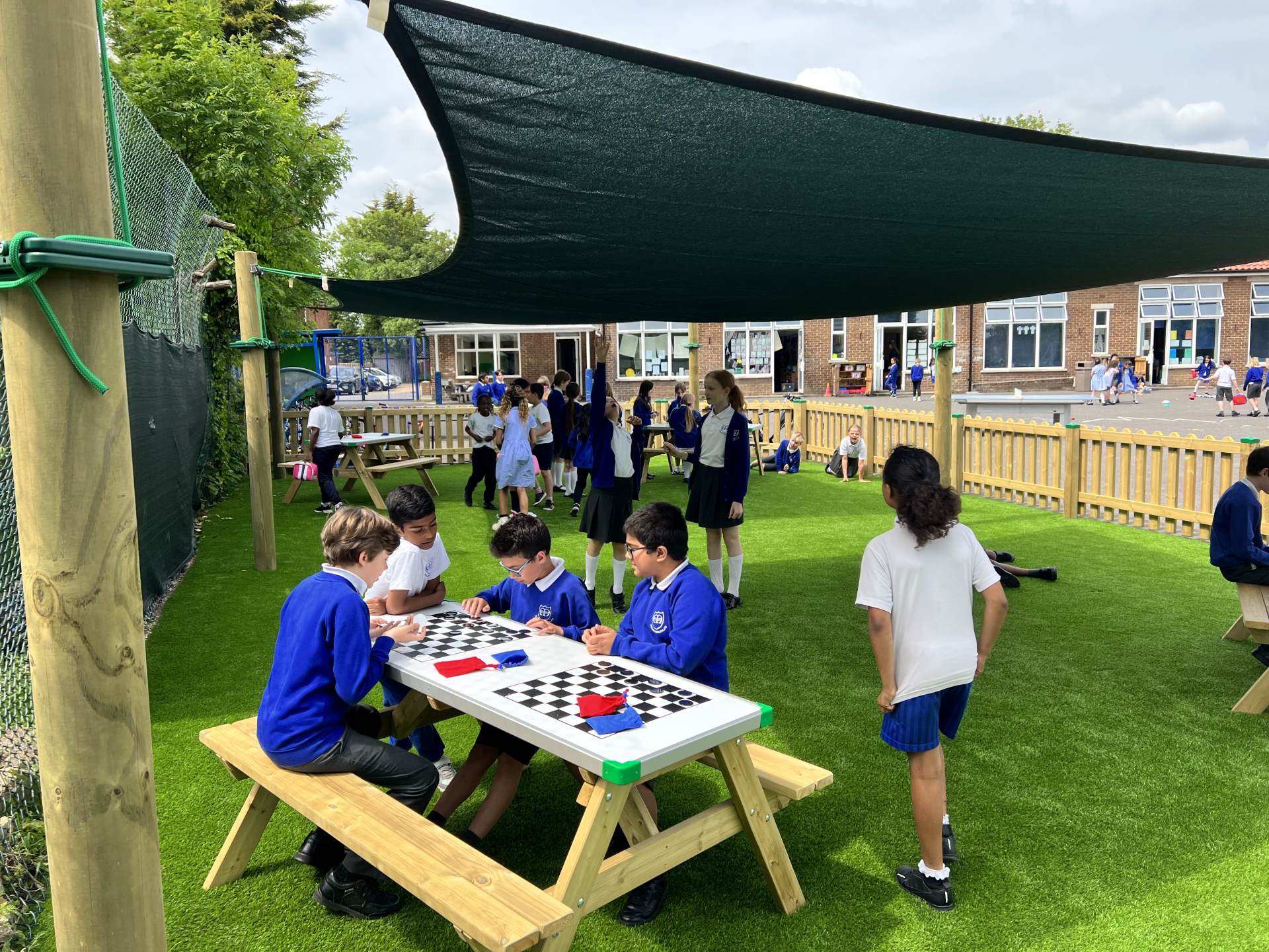 Our Calm Play area provides an alternative space during break and lunch times that allows the children to engage in activities such as playing board games, reading, drawing and catching up with friends under the sails.